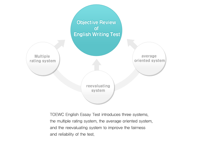 As TOEWC English Essay Test is open-ended, an evaluator’s subjective is more likely to apply to the test results. To prevent it, the evaluation team consists of two evaluators and a proofreader.